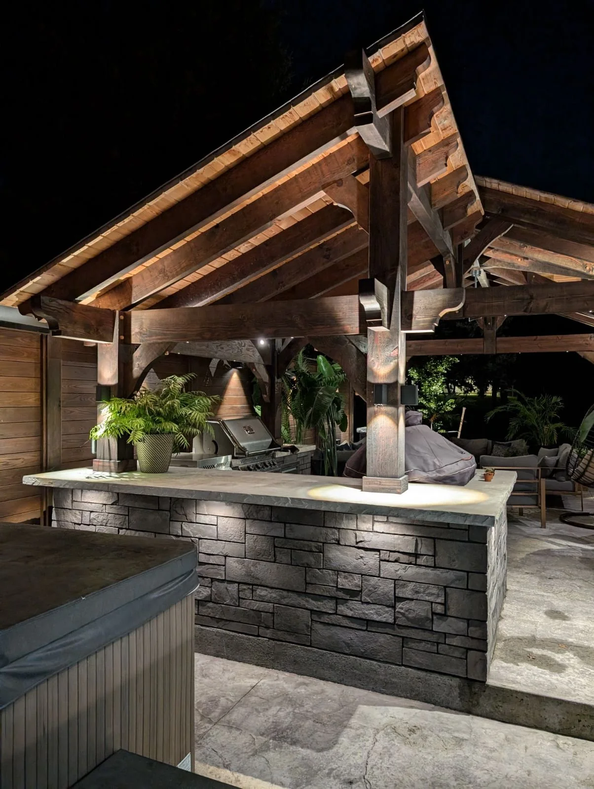 Looking to add a comfortable outdoor living space? Then check out this 15’ x17’ custom timber framed triple gable pavilion. Let us design and customize to your space!